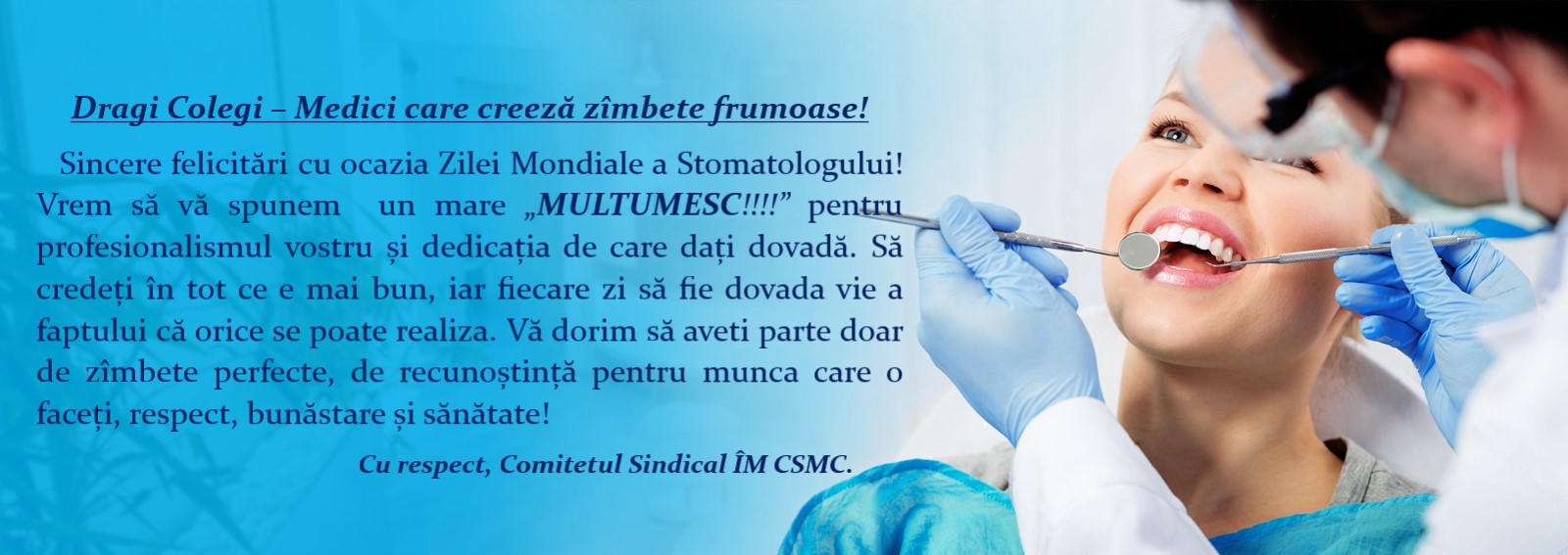 Vă aducem sincere felicitări și cele mai calde urări de Ziua Internațională a Stomatologului!